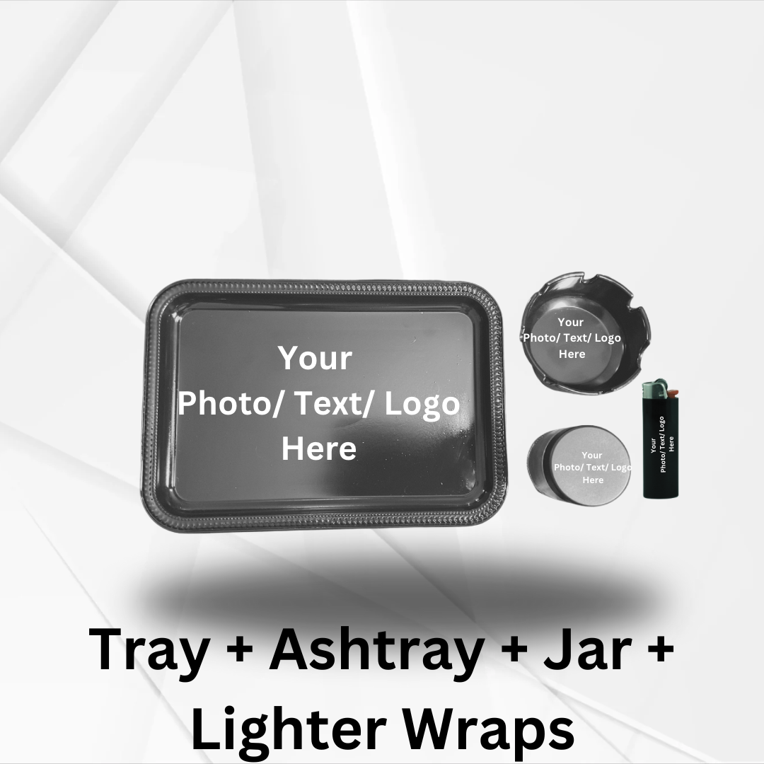 Introducing our meticulously crafted rolling tray set, a must-have for enthusiasts who appreciate both style and functionality. This personalized ensemble can include a sleek rolling tray designed for seamless use, customized lighter wraps for a unique touch, an accompanying ashtray for added convenience, and a dedicated jar to keep your herbs fresh. You pick the options that better suit you. Elevate your smoking experience with this thoughtfully curated collection, where every detail reflects your individuality. Crafted with precision and personalized just for you, this set is the perfect companion for those who appreciate the art of rolling.